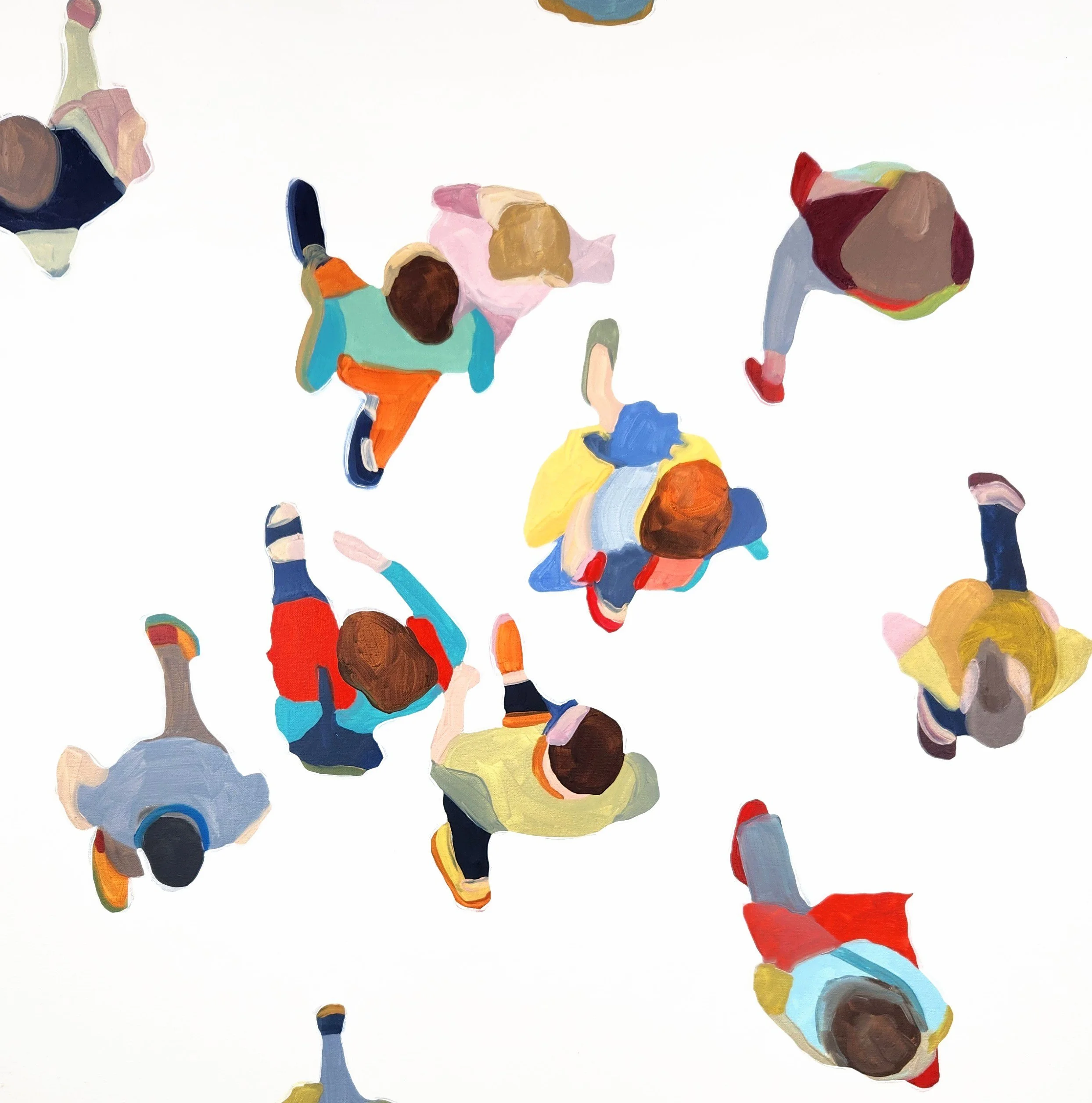 βThe rise of urban culture was a social phenomenon in 19th c Europe where people took to the sidewalks of the city as a way to see and be seen, interacting and socializing publicly. My paintings, mediated through my photographic urban experience, aim to portray the urban crowd as a single entity. Abstracted segments of the figures and patterns on clothing dominate the shallow space in the paintings that attempt to illustrate the visual perception of the everyday experience of city life. The paintings conceal the identities of the individual figures caught in the scene in an effort to expose the identity of the crowd at large.β Sherry is a Canadian painter based in Waterloo, ON. She completed her MFA at University of Western Ontario in London, Ontario and has exhibited her work in private and public galleries in Canada and the US.