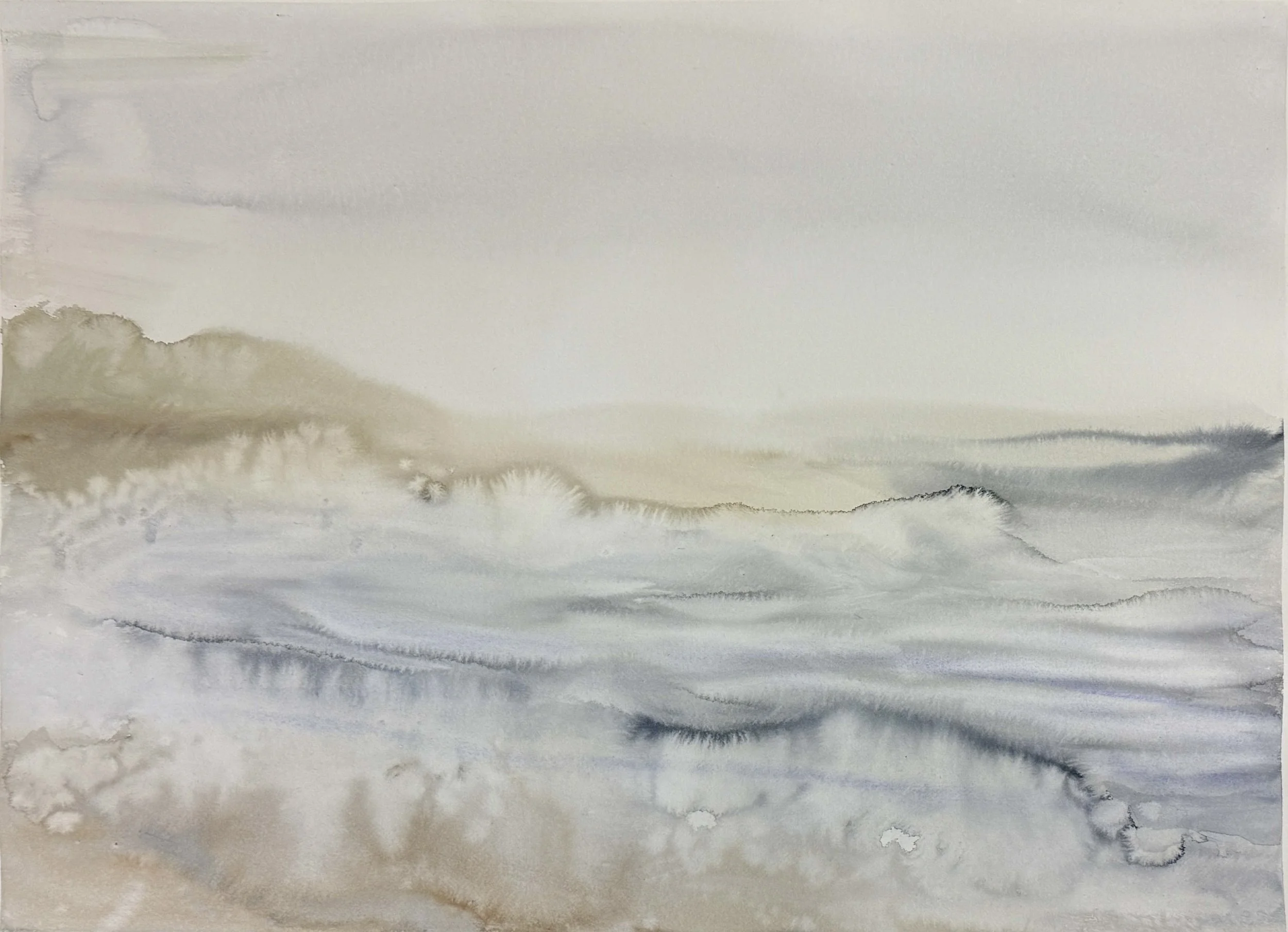 "The beauty in simplicity and abstraction. Uncomplicated shapes with muted colors provide an elegance to nature that I feel is sometimes overlooked. Most of my paintings are not of one specific place but are an organic representation of the combination of time and nature. The soft and somewhat uncontrollable qualities of wet-on-wet watercolor painting allows me to achieve this feel, which I hope will inspire viewers to consider the beautiful fragility in the natural world around them.”