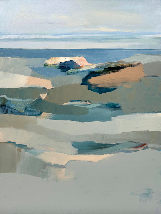 “My paintings are just at the intersection of landscape and abstraction. I am interested in creating space and distance that feels like the familiar world around us but is ambiguous, general, and abstracted. In my painted world I want visual plains and geometric shapes to intersect, overlap, pile-up, and ultimately create a sense of visual distance and depth that we can identify with.Hannah Bureau is a graduate of The Rhode Island School of Design and of the graduate painting program at Massachusetts College of Art and Design. I paint the landscape with bold abstracted shapes and always see the underlying structure of space and distance."