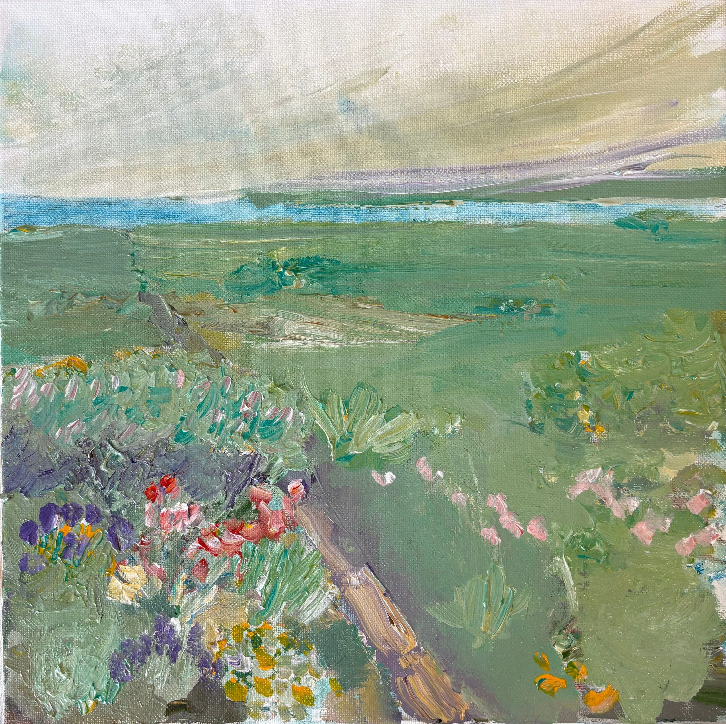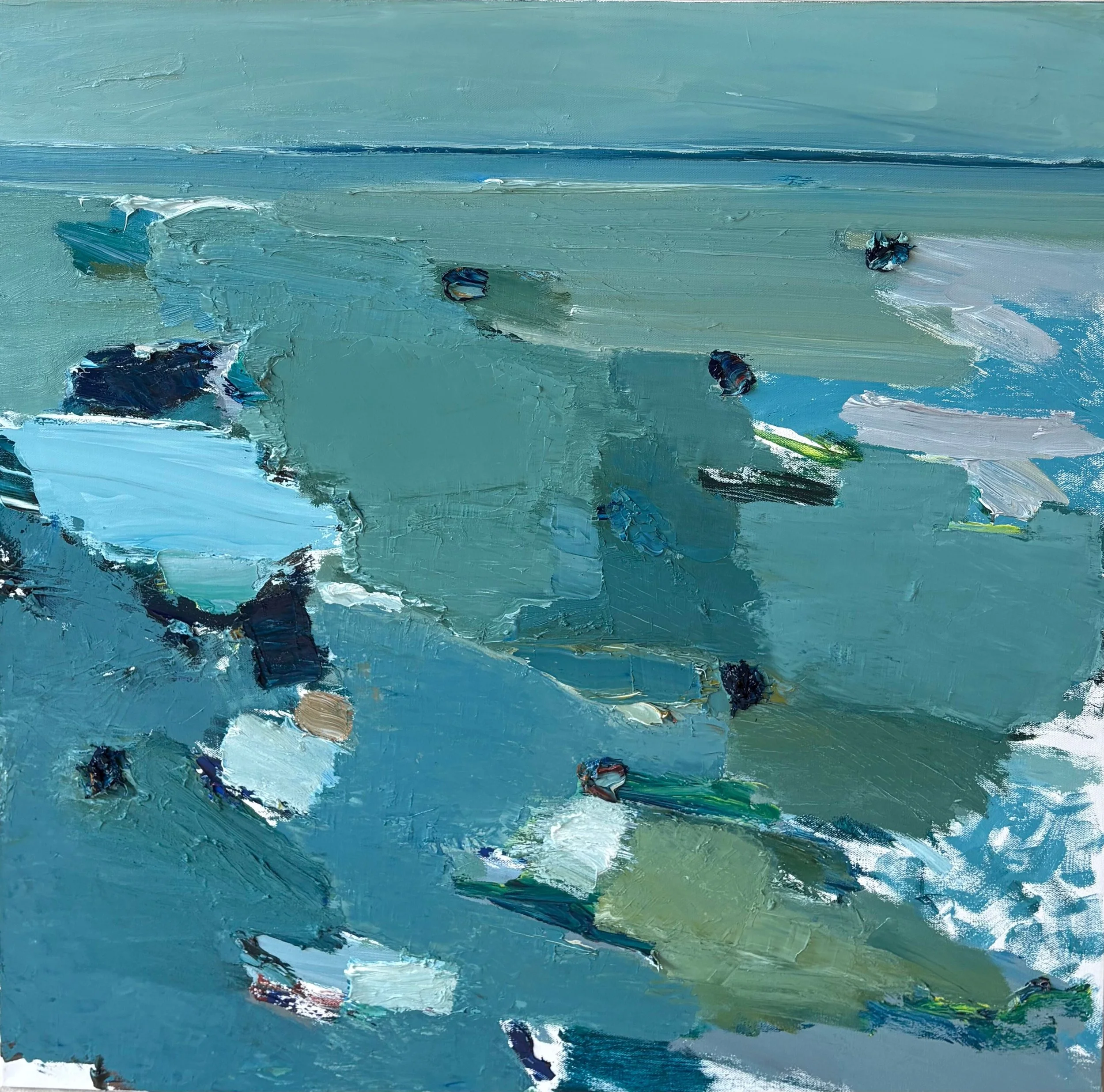 My painting is very much about place. How does a place feel. What are its essential qualities. Why is it so moving. In this sense, I’m also a landscape painter but using abstraction as a way to express this sense of place. Like the NY painters, I encourage process incident to be part of the work relying on intuition as a guide. I’m very interested in color, texture, the contrast between thick and thin, the variety of marks you can make with the brush, the bristles, the back of the handle, the side, scraping, shaping. Allowing it all to mix, to act on each other, creating a spontaneous emerging of the visual, which is what we are after. This means both attending carefully and also letting things go, letting things be what they want to be. I can tell when a painting is done by when it starts to look like itself, beginning to take on a character that is independent of me.