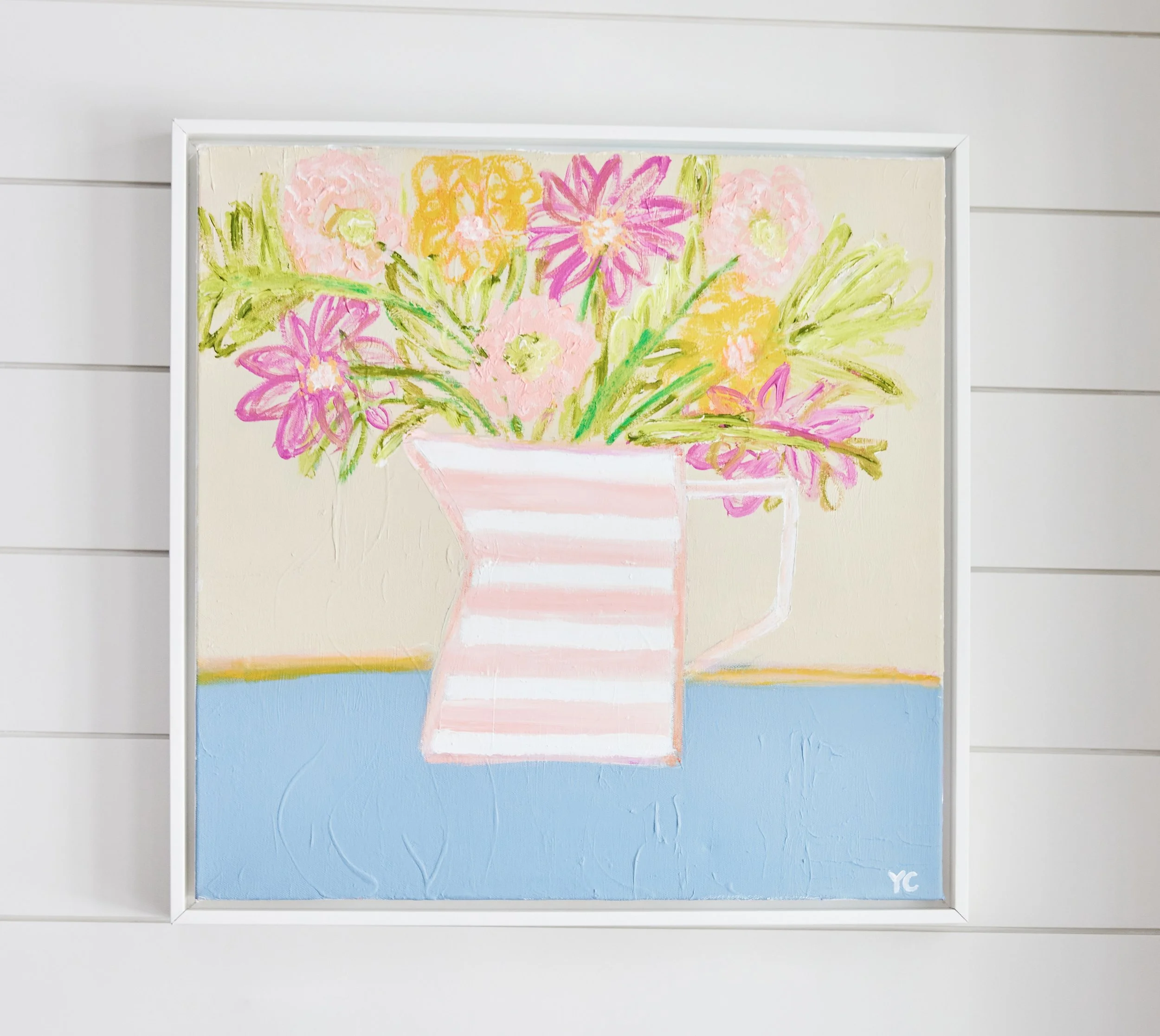My art is instinctive, and while working on several pieces at a time, I embrace the beauty in the drips, smudges and happy accidents that dictate the personality and direction of each and every canvas.